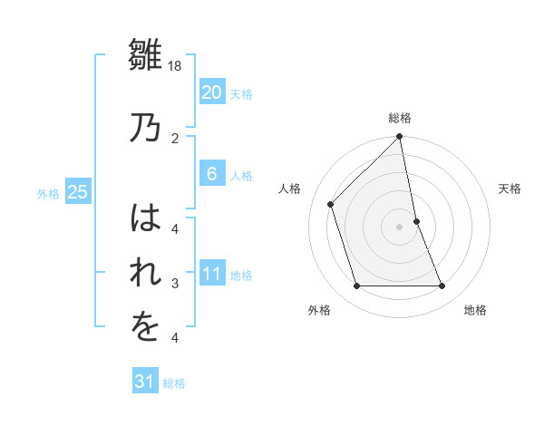 雛乃 はれをさんの総格は31画の5点!
