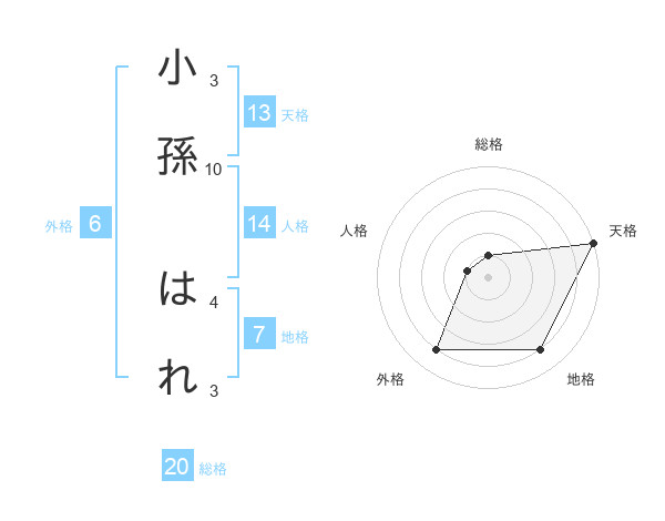 小孫 はれさんの天格は13画の5点!