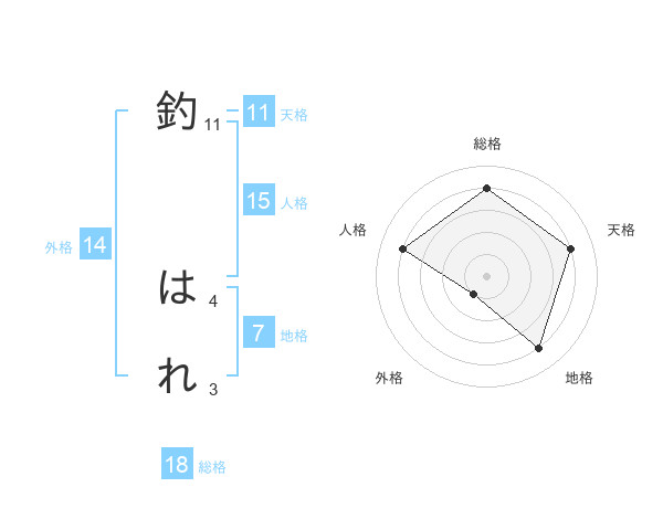 釣 はれさんの天格は11画の4点!