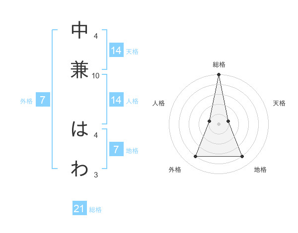 中兼 はわさんの総格は21画の5点!