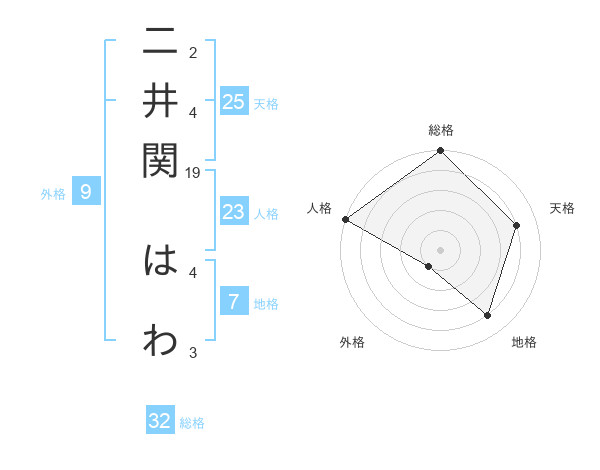 二井関 はわさんの総格は32画の5点!