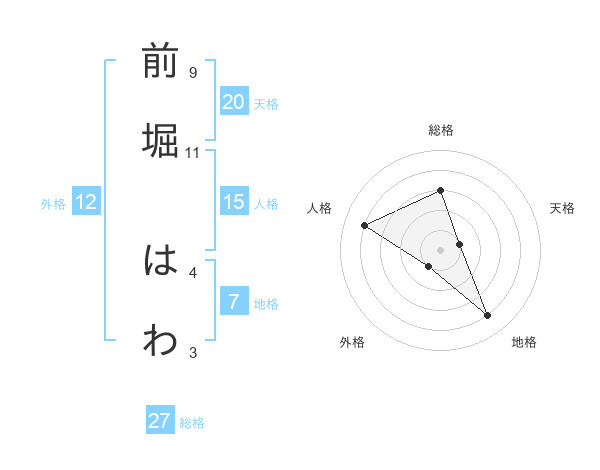 前堀 はわさんの総格は27画の3点!
