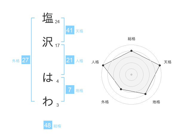 塩沢 はわさんの天格は41画の5点!