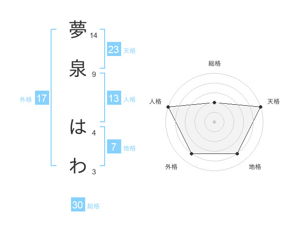 夢泉 はわさんを姓名の画数から五運を鑑定