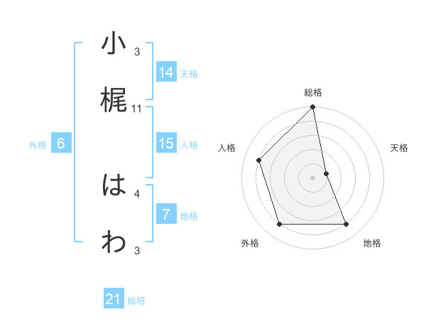 小梶 はわさんの総格は21画の5点!