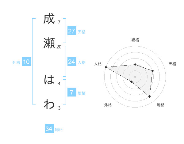 成瀬 はわさんを姓名の画数から五運を鑑定