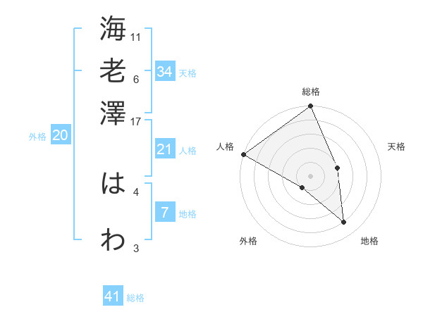海老澤 はわさんの総格は41画の5点!