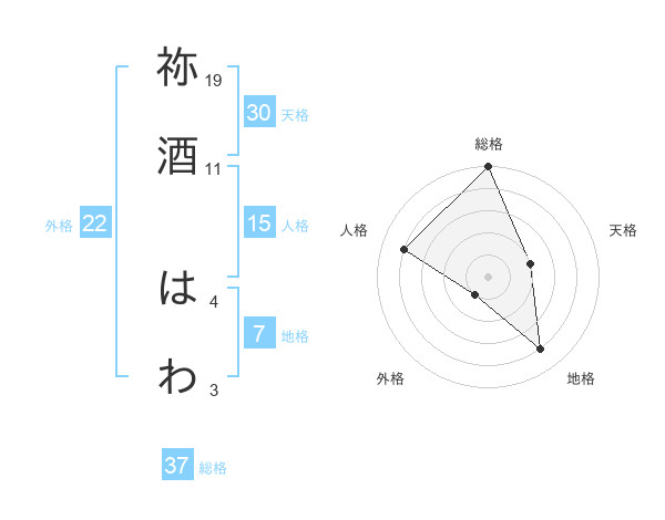 祢酒 はわさんの総格は37画の5点!