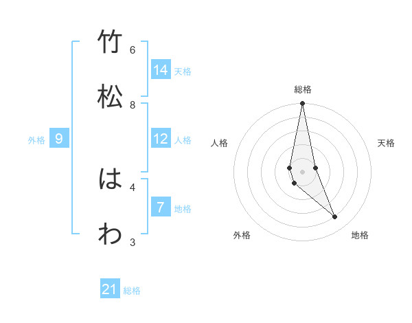 竹松 はわさんの総格は21画の5点!