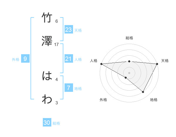 竹澤 はわさんの天格は23画の5点!