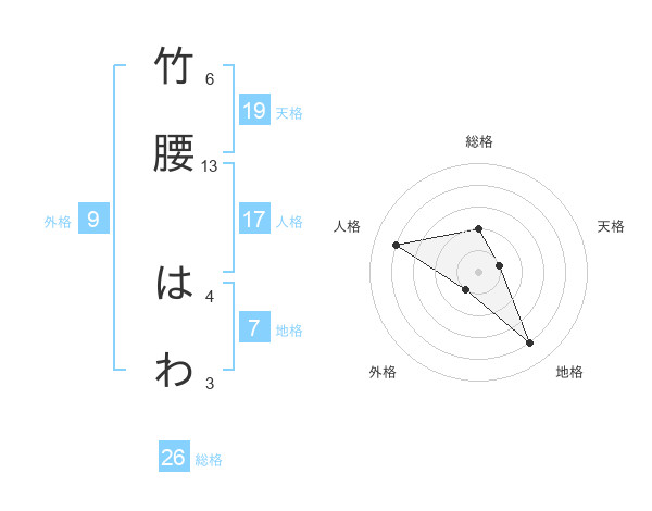 竹腰 はわさんを姓名の画数から五運を鑑定