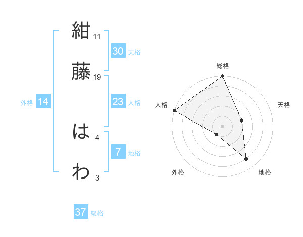 紺藤 はわさんの総格は37画の5点!