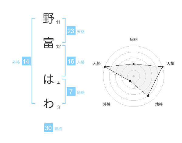 野富 はわさんの天格は23画の5点!
