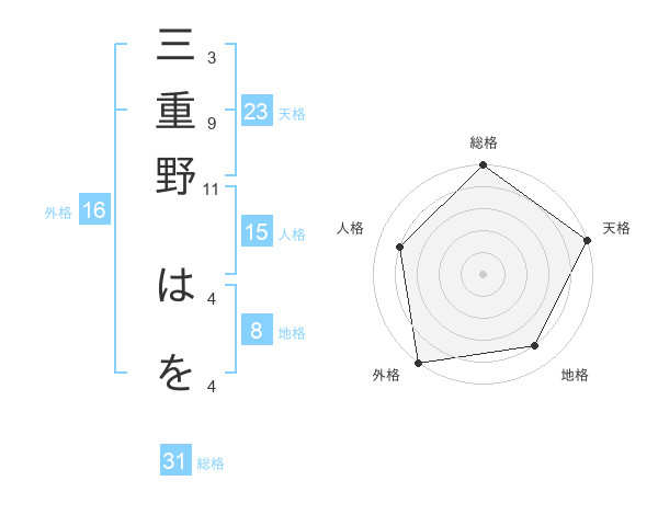 三重野 はをさんの外格は16画の5点!