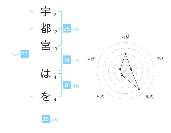 宇都宮 はをさんを姓名の画数から五運を鑑定
