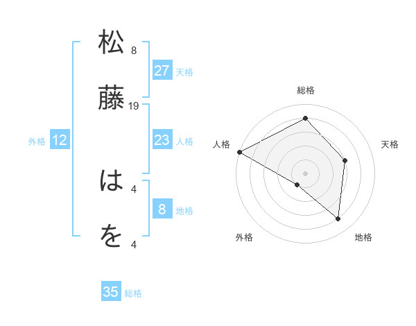 松藤 はをさんの総格は35画の4点!