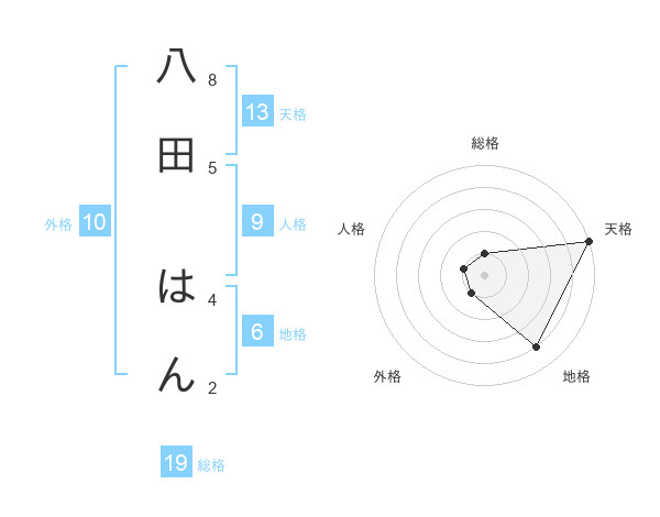 八田 はんさんの天格は13画の5点!