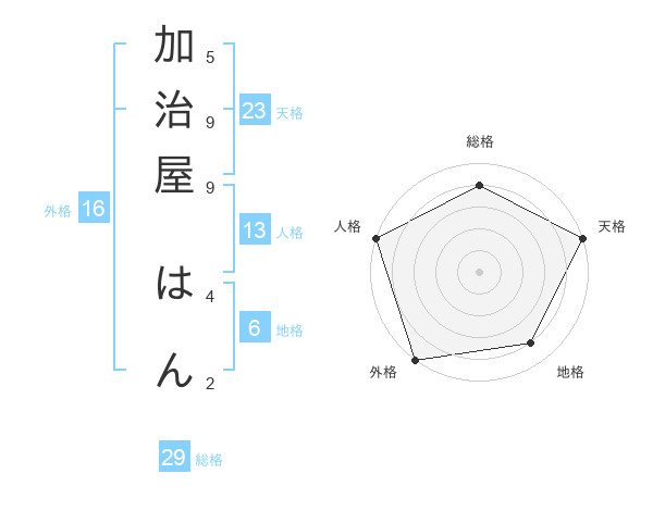加治屋 はんさんを姓名の画数から五運を鑑定
