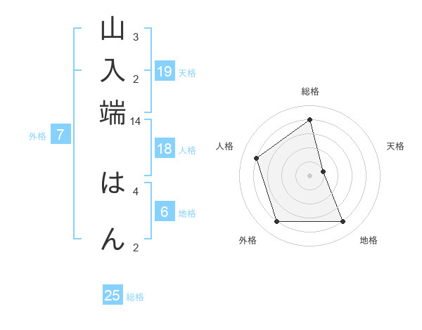 山入端 はんさんの総格は25画の4点!