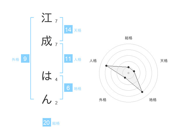 江成 はんさんの総格は20画の1点!
