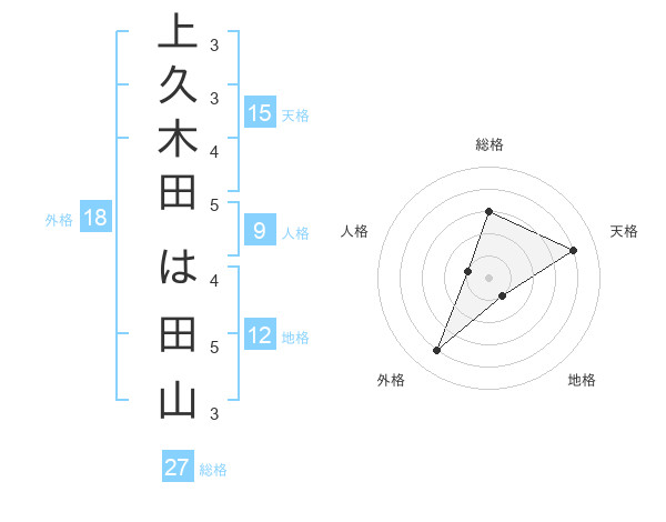 上久木田 は田山さんを姓名の画数から五運を鑑定