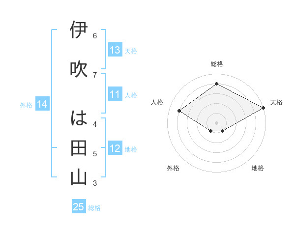 伊吹 は田山さんを姓名の画数から五運を鑑定