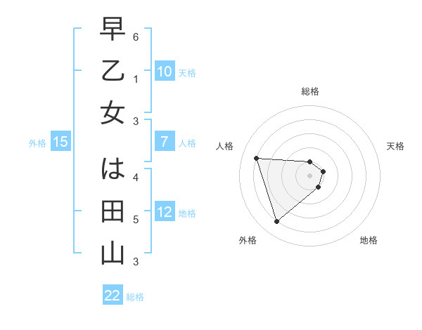 早乙女 は田山さんを姓名の画数から五運を鑑定