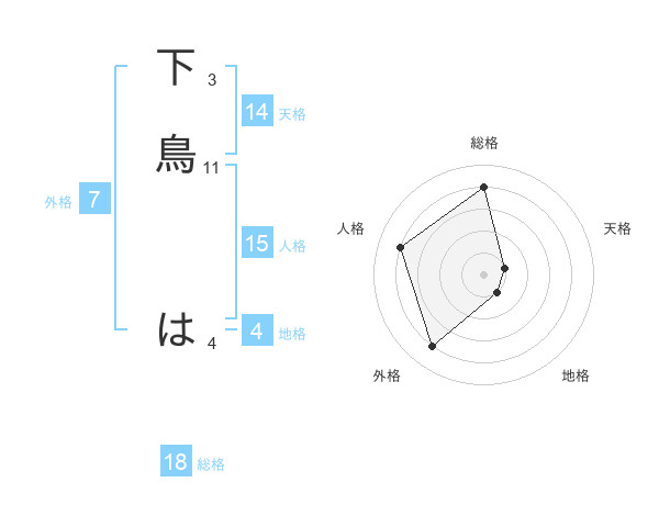 下鳥 はさんの外格は7画の4点!