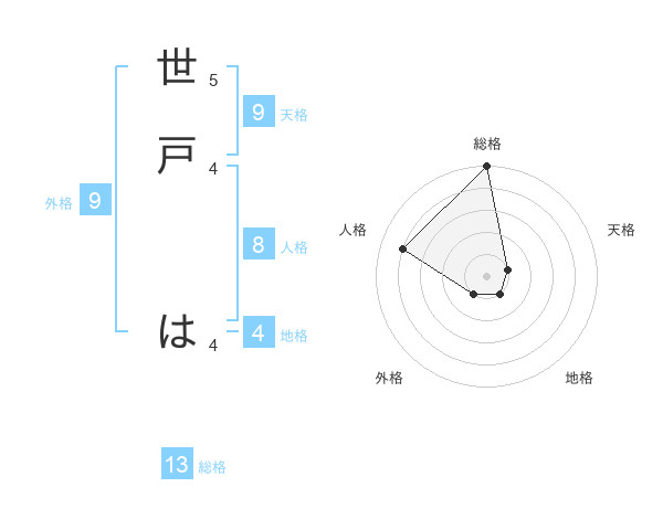 世戸 はさんの総格は13画の5点!