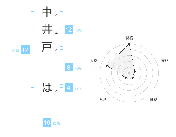 中井戸 はさんの総格は16画の5点!