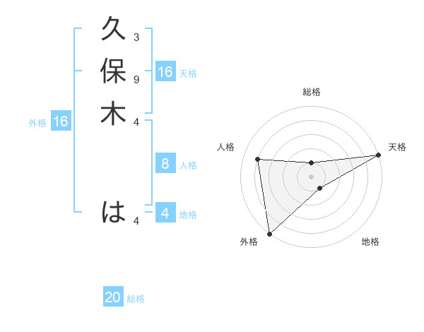 久保木 はさんの総格は20画の1点!