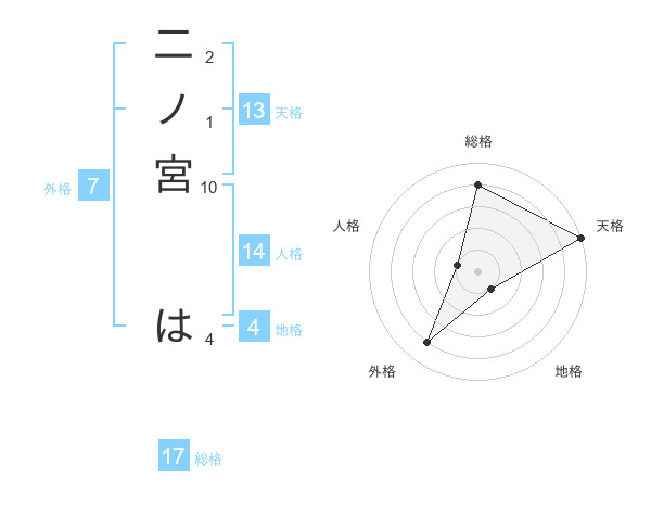 二ノ宮 はさんを姓名の画数から五運を鑑定