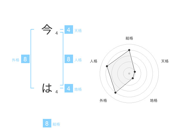 今 はさんの総格は8画の4点!
