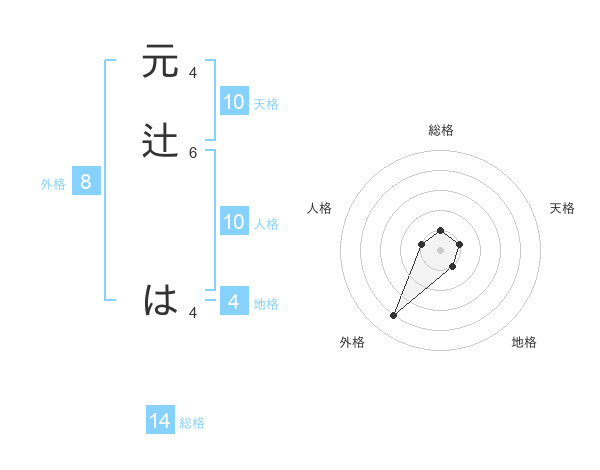 元辻 はさんの外格は8画の4点!