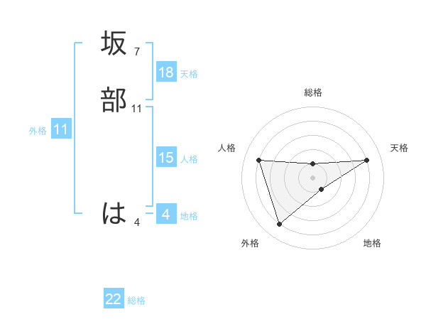 坂部 はさんの総格は22画の1点!