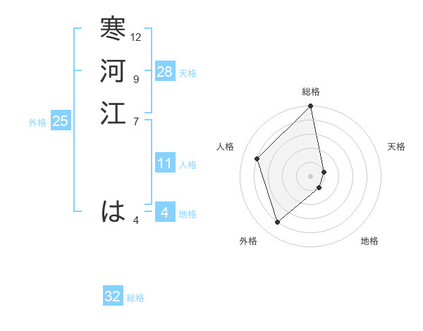 寒河江 はさんの外格は25画の4点!