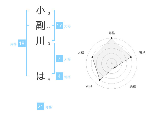 小副川 はさんの天格は17画の4点!