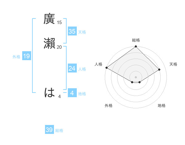 廣瀨 はさんの総格は39画の5点!