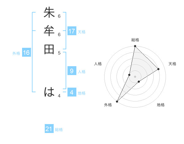 朱牟田 はさんを姓名の画数から五運を鑑定