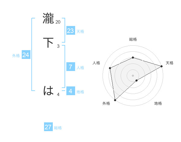 瀧下 はさんの天格は23画の5点!