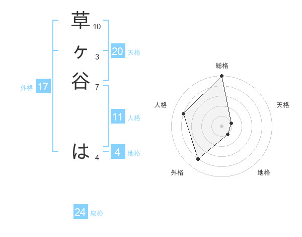 草ヶ谷 はさんを姓名の画数から五運を鑑定