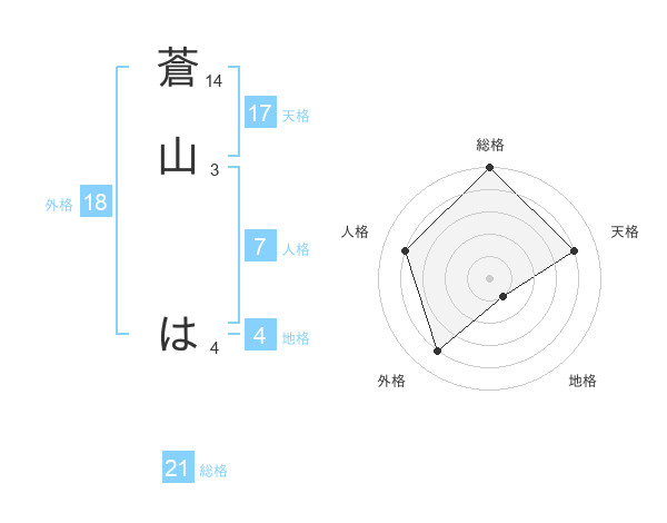 蒼山 はさんの天格は17画の4点!
