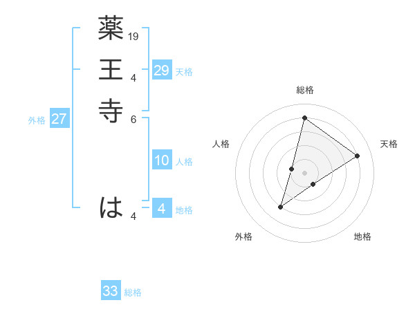薬王寺 はさんを姓名の画数から五運を鑑定