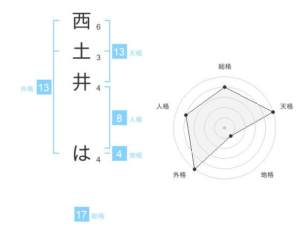 西土井 はさんの外格は13画の5点!