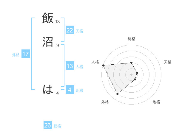 飯沼 はさんの外格は17画の4点!