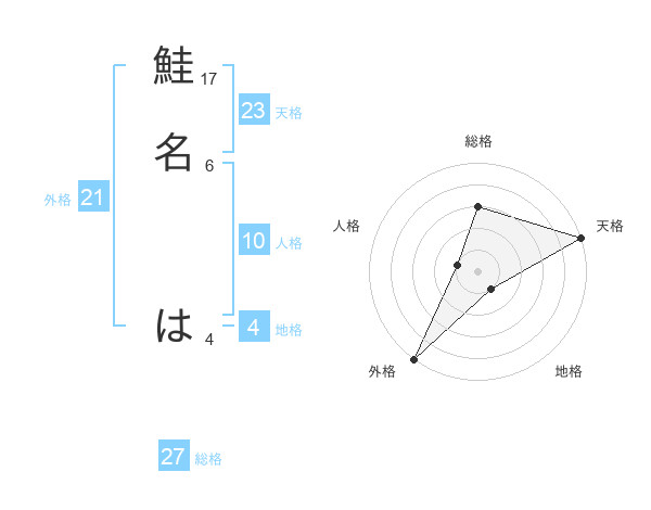 鮭名 はさんの天格は23画の5点!