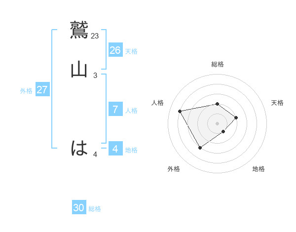 鷲山 はさんの総格は30画の2点!