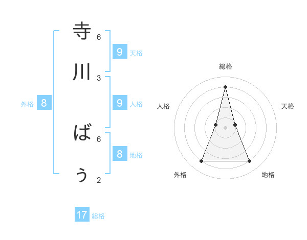 寺川 ばぅさんの総格は17画の4点!