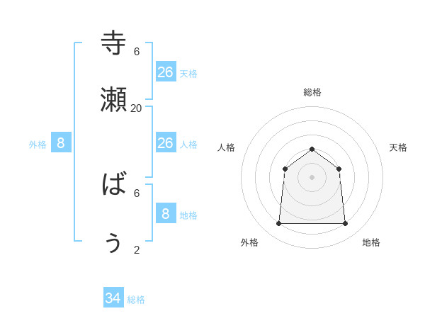 寺瀬 ばぅさんの天格は26画の2点!