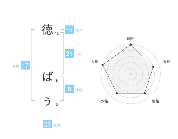 徳 ばぅさんの総格は23画の5点!